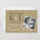 The look of burlap photo announcement perfect for a save the date, engagement or any announcement. Customise fonts and text to suit your style.