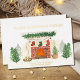 Personalised business holiday card with luxury gold foil typography and watercolor winter scene. The wording is fully editable and currently reads "warm christmas wishes from [your name] and the team at [your business name]" which you can customise to suit. The festive design has an abstract indoors outdoors blend of winter forest and cosy fireplace complete with candles, stockings and parcel.