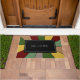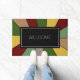 Modern Warm Colourful Mosaic Design on Black Welcome doormat.
