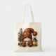 Add rustic holiday charm to your errands with this cozy copper Christmas gonk tote bag. A bearded gonk snuggles in a knitted hat, holding a steaming mug beside a glowing lantern and a little pine tree decorated with ornaments and pinecones. The warm, earthy tones make it perfect for anyone who loves a traditional yet stylish Christmas look.