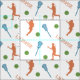 Your lacrosse player will love to sport this design! Featuring two silhouettes of female players in motion with the word "LACROSSE", balls and sticks repeating for the pattern. Available in pink/purple, lime/orange/turquoise, warm blue/green/orange, purple/light teal, blue/yellow/purple, as well as a black/grey verson on school colour backgrounds. Matching products available.
