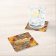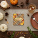 This custom Thanksgiving paper coaster features a warm, classic plaid background in rich shades of brown, tan, and cream. The design is framed by authentic fall splendour: vibrant watercolor pumpkins and a gorgeous scatter of autumn foliage in fiery reds and brilliant golds. A sophisticated gold brushstroke sits centrally, ready for personalisation with your family name or greeting below the "HAPPY THANKSGIVING" message. Delightful details like anise stars and red berries add textural complexity to this festive, square design.