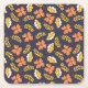 Warm Falling Autumn Leaves with Flowers Square Paper Coaster