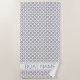 Warm Grey geometric circle pattern beach towel with modern minimal Boat Name Typography. The elegant Japanese Shippo pattern refers to the seven treasures of Buddhism. It embodies power, concentration and the interplay of different elements, a perfect decor for maritime outside seating areas, patios and decks, and a beautiful gift idea for sailors an boaters. #ybeedesign #ybeesea #graycustombeachtowel #hamptonsstylebeachtowel Custom Boat Name beach towels made with ocean love © Design y.BEE SEA