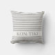 Warm Grey stripes deck and patio decor. Personalised Warm Grey striped pillow with Boat Name or Beach Resort Name template for outside seating areas. Boat Name placement on both sides. Boat Name pillows are a beautiful gift idea for her and him, boaters and sailors. #ybeedesign #ybeesea #graystripespillows #grayexterior #boatnamepillows Timeless elegant patio deck decorating ideas made with ocean love © Design y.BEE SEA