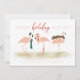 This holiday greeting card features hand drawn flamingos bundled in holiday scarves and hats and a blank backer, perfect for adding your own photo or holiday message/greeting.