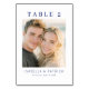 This wedding table card features a clean, modern layout with a large photo placeholder at the top, allowing for personalisation. The design uses a soft colour palette of neutral tones and deep navy text to create an elegant and inviting look. With its mix of serif and script fonts, it adds sophistication while maintaining simplicity. Perfect for weddings, this card emphasizes clarity and warmth, making it ideal for creating intimate moments during celebrations.
