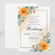 A vibrant display of warm orange blossoms and verdant foliage creates a romantic, painterly atmosphere. This design evokes a feeling of natural beauty and celebratory joy.