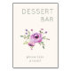 This wedding tabletop sign features a minimalist layout with a centered floral illustration on a light background. The design showcases soft pink and purple watercolor flowers surrounded by green leaves, creating an elegant and inviting atmosphere. The text "DESSERT BAR" is displayed in clean, uppercase letters at the top, while "please take a treat!" appears in a friendly lowercase font below, enhancing its welcoming tone. Perfect for guiding guests to sweet treats at your event, this sign combines delicate artistry with modern typography to set a warm and sophisticated mood.