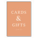 This wedding tabletop sign features a minimalist design with a warm peach background, creating an inviting and elegant atmosphere. The layout is simple yet sophisticated, showcasing the text "CARDS & GIFTS" in bold, uppercase letters, followed by a smaller "thank you" below, all set in a clean sans-serif font. The balanced composition emphasizes clarity and focus, making it perfect for expressing gratitude at your special event. Its modern aesthetic and uncluttered presentation make it ideal for any wedding celebration.