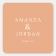 This wedding sticker features a minimalist design with a soft peach background and clean, modern typography. The centered text includes two names connected by an ampersand, followed by a simple "thank you" message in lowercase letters, creating a balanced and elegant look. The use of negative space enhances the clarity and sophistication of the design, making it perfect for expressing gratitude at your special event. Its contemporary style is versatile, suitable for various wedding-related occasions.