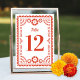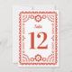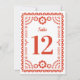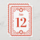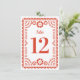 This beautiful papel picado inspired wedding table number card features an ornate frame in warm red on a white background, and festive typography. This elegant yet modern design is a fabulous choice for a Latinx wedding, rehearsal dinner, engagement party, or bridal shower. See coordinating items in the collection...