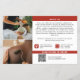 Marketing flyer for with warm red details for a spa, salon, massage therapist or more with your photos, logo, and QR code. Add your text, your services, a discount offer, contact info, address, opening hours, an about text, social media and more. Promotional spa flyer personalized with text, logo, photos, and QR code to hand out to potential customers and clients with information about your small business, discount offers, and more in a timeless design with details in a warm shade of carnelian red.