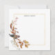 Warm rustic watercolor style leaves in Fall colours of brown, gold and rust with bird perched on a leafy branch, gold border and editable personalisation text field. Back features a seamless Fall leaf pattern.