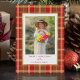 Showcase your treasured family photo in this charming rustic plaid design in warm red and gold tones. Includes editable text fields.