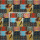 Rectangular patches of loopy designs and sea turtle images in warm colours pattern this pretty fabric.