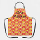 This apron has a mid-century modern design of rectangles stacked three thick in warm colours of red, orange, gold, and yellow on a field of white. Want the same design with different colours? Message me.