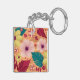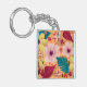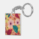 Warm Tropical Floral with Red and Green Leaves Key Ring