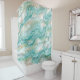 Shades of green, blue and grey and tan marble decorate this elegant shower curtain. The design is from original art.
