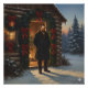 Embrace the festive spirit with this HD-quality masterpiece inspired by the classic American style of Eastman Johnson. A distinguished man stands at the warmly lit entrance of a Christmas-decorated log cabin, surrounded by snowy evergreens and lush wreaths with bold red ribbons. This artwork captures the nostalgia and joyful warmth of 19th-century American holiday traditions, inviting you to bring home the comfort and elegance of a timeless winter celebration.