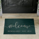 A great gift for newlyweds or new homeowners, our personalised welcome doormat in rich hunter green features "welcome" in modern, elegant handwritten calligraphy script. Personalise with your family name and year established in classic block lettering.