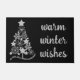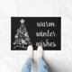 Modern Christmas Doormat with stylish typography and decorated christmas tree. Design reads warm winter wishes has a colour palette of black and grey.
