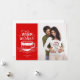 Warm Wishes Hot Cup Coffee Cocoa Red White Custom Holiday Card with a single photo and text template you can personalise on the back.