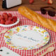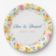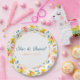 Enjoy a warm watercolor wedding theme with the addition of these pretty modern floral paper plates. Customise your order with the name or statement of your choosing. Add a date if you want! Yellow and pink flowers adorn these plates, with a unique design from an original watercolor painting. Hints of blue and leaves of green add Spring and Summer vibe to the design. Great for Summer parties, garden parties, or baby showers, too! Check out the other party supplies in this Collection.