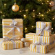 The customisable gift wrapping paper showcases cheerful yellow and white stripes. This versatile wrap is perfect for birthdays, housewarming gifts, teacher appreciation day, or any special occasion.