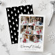 Modern holiday card featuring 6 of your photos arranged in a collage layout. "Warmest Wishes" is displayed in a handwritten black script with your family name and the year shown below. The multi-photo holiday card reverses to display a black and white Christmas tree pattern.