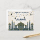 This stunning postcard features a majestic mosque, symbolising faith and community. It's set against a backdrop of intricate Islamic geometric patterns, reflecting tradition and harmony. Delicate Islamic ornaments add an elegant touch, completing the celebratory design.