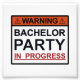 Warning, Bachelor Party in Progress! Caution advised, drinking and other possible adult activities ahead. Stick this sign out front of the party, for there's no turning back!