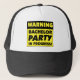 Funny Bachelor Party T-Shirt for groom, best man, groomsan, and all the guys. Design spoofs a warning sign and reads, "Warning, Bachelor Party in Progress." Can be personalised.