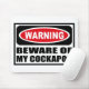 Warning BEWARE OF MY COCKAPOO Mousepad you can customise at www.WarningSignShirts.com and features a red and black warning sign and BEWARE OF MY COCKAPOO in bold black letters to warn the world. You can also customise your own warning sign Mousepad with the text you want.