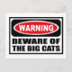 Warning BEWARE OF THE BIG CATS Postcard you can customise at www.WarningSignShirts.com and features a red and black warning sign and BEWARE OF THE BIG CATS in bold black letters to warn the world. You can also customise your own warning sign Postcard with the text you want.