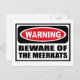 Warning BEWARE OF THE MEERKATS Postcard you can customise at www.WarningSignShirts.com and features a red and black warning sign and BEWARE OF THE MEERKATS in bold black letters to warn the world. You can also customise your own warning sign Postcard with the text you want.