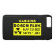 A black and yellow warning sign with text reading, "WARNING, BOGON FLUX, MAY EXCEED SAFETY LIMIT." A radioactive material warning symbol also appears. The bogon is an elemental particle which carries the property of bogosity, or being bogus (i.e., fake of bad). All humans are natural low-level bogons emitters. Emission levels fluctuate over time. Politicians, other individuals such as used car salesmen, are high level sources of bogons. When such individuals emit extremely high levels of bogons, as when making campaign promises, a bogon flux may occur. A bogon flux can be very dangerous to those in the area. Bogon was originally hacker jargon having to do with bogus addresses on a computer network.