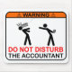 Funny mousepad with the text, "WARNING! Do Not Disturb The Accountant"