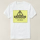 a white tshirt that depicts a yellow warning sighn with black font saying "WARNING: does not play well with others"