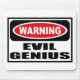 Warning EVIL GENIUS Mousepad you can customise at www.WarningSignShirts.com and features a red and black warning sign and EVIL GENIUS in bold black letters to warn the world. You can also customise your own warning sign Mousepad with the text you want.