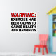 American Fitness and Motivational Quote: Warning: Exercise has been known to cause health and happiness. Get everyone and yourself motivated with this fitness and bodybuilding motivational slogan. Official Website Fitbys.