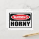 Warning HORNY Postcard you can customise at www.WarningSignShirts.com and features a red and black warning sign and HORNY in bold black letters to warn the world. You can also customise your own warning sign Postcard with the text you want.