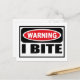 Warning I BITE Postcard you can customise at www.WarningSignShirts.com and features a red and black warning sign and I BITE in bold black letters to warn the world. You can also customise your own warning sign Postcard with the text you want.