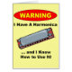 They cant' say they weren't warned! You have a harmonica ... and you know how to use it! Funny mug, cards, mouse pads, etc. make a great gift for any harmonica player or fan.