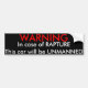 This is a great bumper sticker to put on your car. It says, "WARNING In Case of Rapture, This car will be UNMANNED".