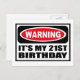 Warning IT'S MY 21ST BIRTHDAY Postcard