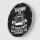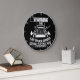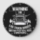 This bold and humourous wall clock is for the no-nonsense log truck driver. Against a black background, it features a stark white illustration of a semi-truck with pine trees, framed by a white rim. The prominent text "WARNING THIS LOG TRUCK DRIVER DOES NOT PLAY WELL WITH STUPID PEOPLE" is displayed in distressed white lettering, making a clear and amusing statement about the driver's personality.