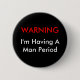 Black badge with a red "Warning" and white "I'm having a man period" text.