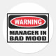 Warning MANAGER IN BAD MOOD Sticker