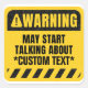 Make your own personalised warning! may start talking about stickers to decorate and express how much you love and enjoy talking about a specific topic such as: hobbies, sports, tv programmes, books, academic subjects, places, p ets, etc. This design displays a yellow caution sign, black diagonal stripes, exclamation mark and funny quote in capital sans serif black font. Just finish the sentence with your chosen subject, the maximum length is 13 characters.